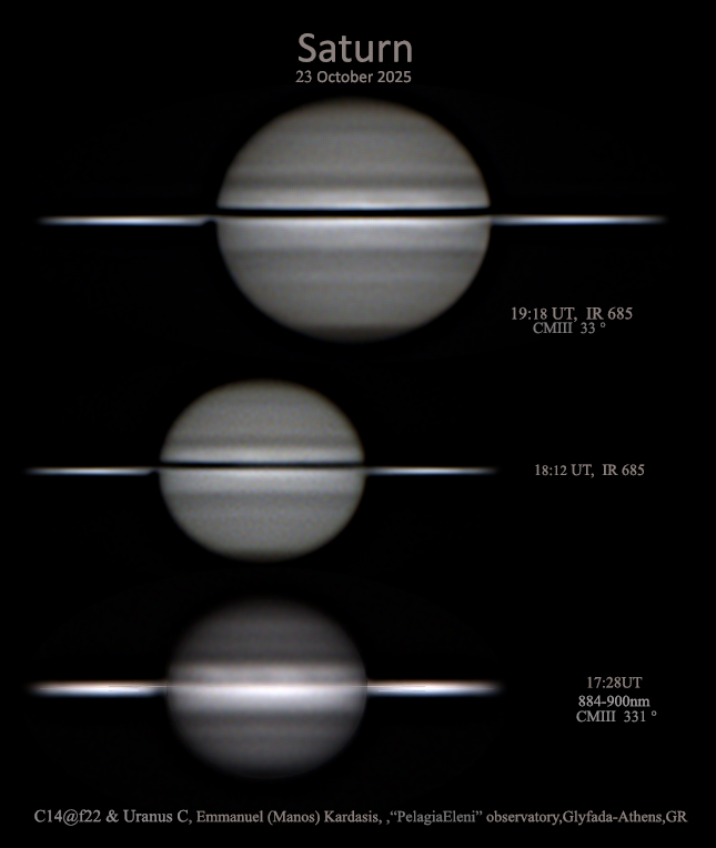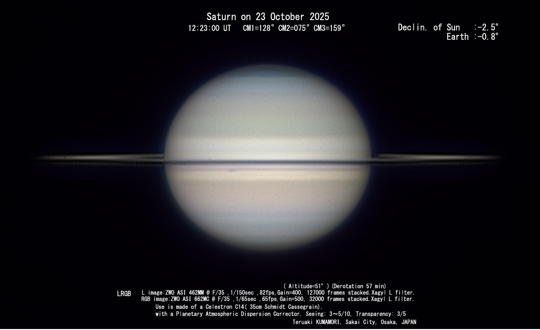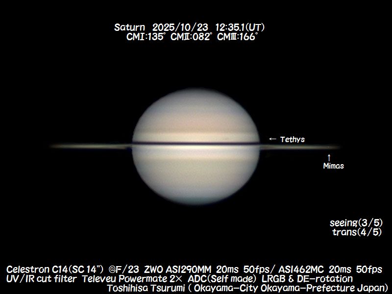 寒気の流れ込みで気温が低下。シーイング透明度ともに厳しい状況であったがリングに沿ってTethysの移動が確認できた。
