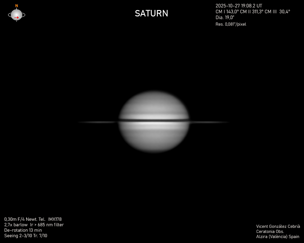 約2週間ぶりで輪が細くなりました。シーイングはよくなく不安定でした。