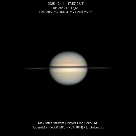 A gap in the recent cloudy weather allowed me to check in on Saturn yesterday evening. Average seeing conditions, and nothing obvious to note.[Clyde Foster : Khomas,Namibia]