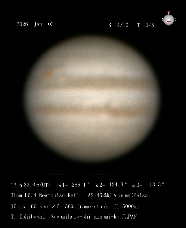 新年初観測です。相変わらずの今ひとつなシーイングです。