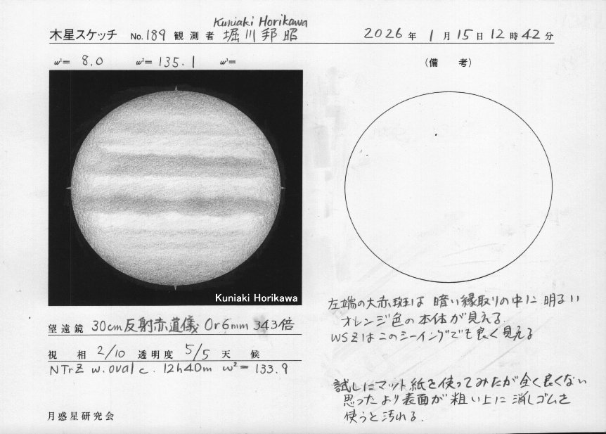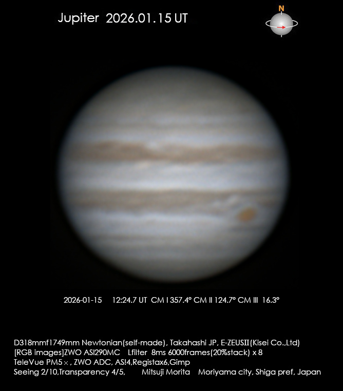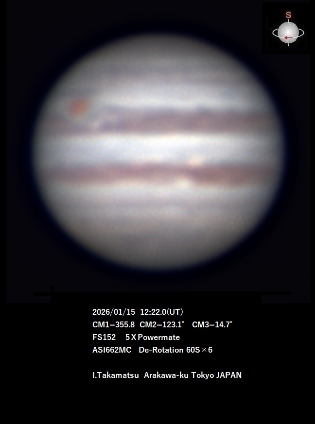 久々の木星。比較的暖かな無風の快晴。開始時はGRSが没するタイミング。シーイングは概ね中位ですが後半やや改善。