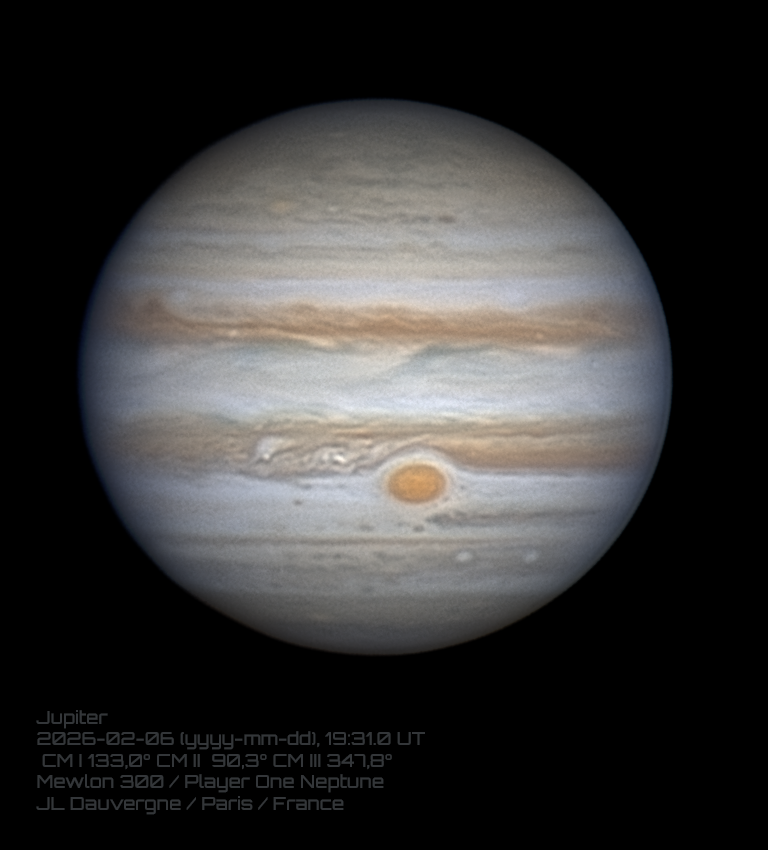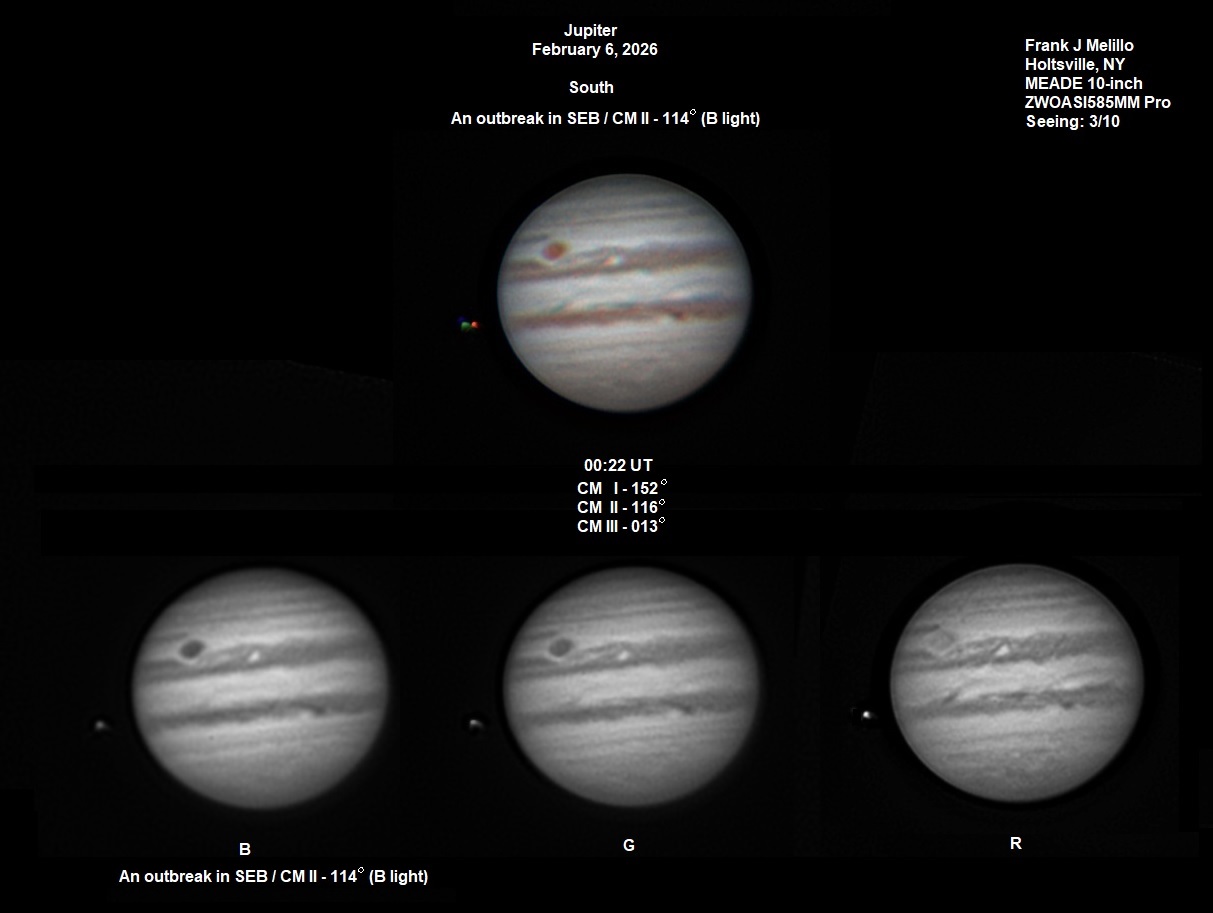 I have attached my first RGB images of Jupiter with a new ASI585MM Pro camera on February 6,2026 at 00:22 UT.
