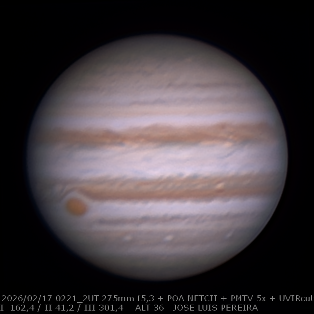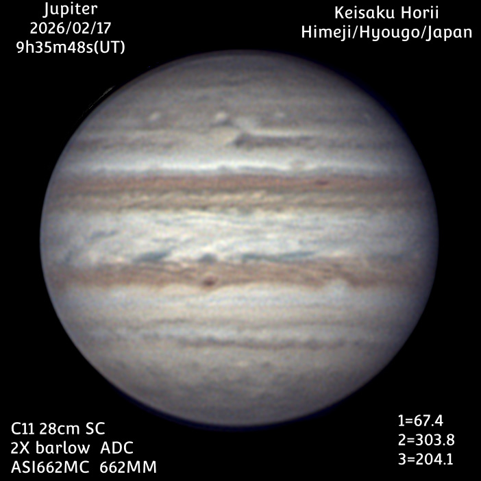 気流が不安定で雲が出てしまいました。GRSが見えています。