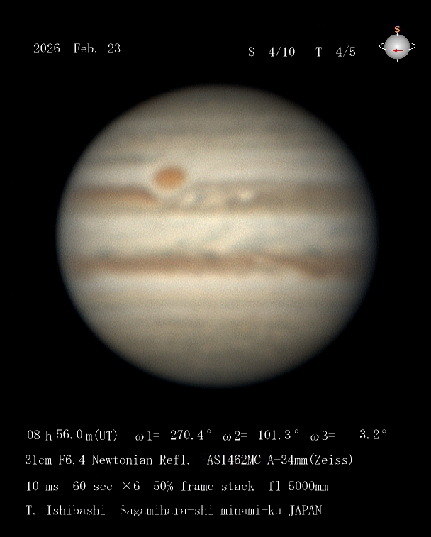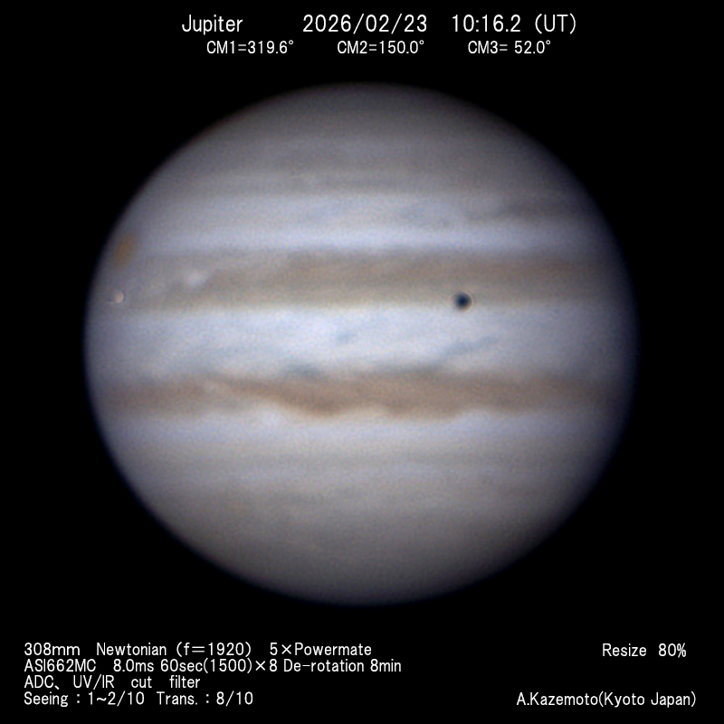 冬にしてはよいシーイングでしたがその後悪化してきました