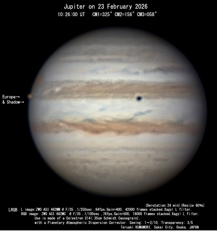 エウロパ本体がリムで小さくまとまっているのは、WinJUPOS_Derotation_衛星支援の「できすぎエフェクト」だと思います。