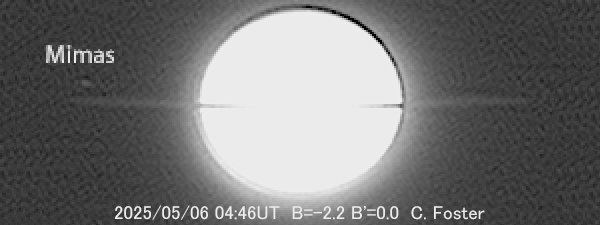 土星5月6日16時(UT)、環の平面が太陽を通過しました。 地球は一足早く3月23日に通過、それ以来、太陽の当たらない環の裏側を見る状態となっていました。 悪条件にもかかわらず、数名の観測者が強調処理された画像で環の裏側を捉えることに成功しています。 ただし、環は直線状のかすかなラインで、過去の眼視での記録にある光斑とは、似ても似つかぬ様相でした。