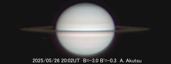 一方、消失後は太陽光が環の南側を照らすようになり、明るくなるはずですが、消失の前後で環の見え方に違いはほとんどなく、通常のRGB画像で環が写るようになったのは、6日後の12日になってからでした。 これは昨年秋以降、画像で見る環が急激に暗くなったのと同じ理由で、環の平面に太陽光が十分にあたっていなかったためと考えられます。 眼視やモニター上では、2日後には環が見えると報告されていますので、この点では眼視の方が勝っているようです。 今後は環の太陽に対する傾きがどんどん大きくなっていくので、環の明るさも回復することでしょう。